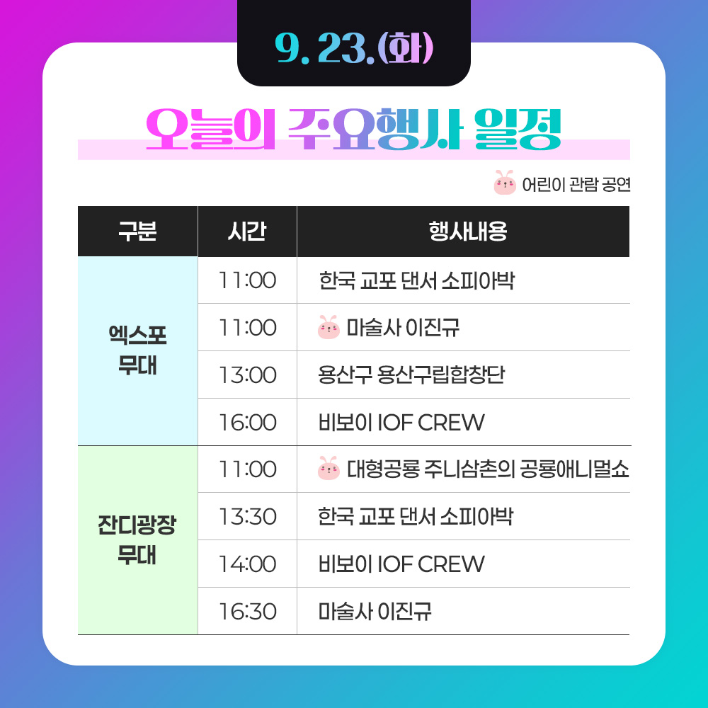 커뮤니티 카드뉴스 2025 제천국제한방천연물산업엑스포의 새로운 소식을 전합니다. 커뮤니티 엑스포안내 산업관 관람신청 행사안내 티켓안내 소식·알림 관광안내 카드뉴스 공지사항 고시공고 엑스포뉴스 포토갤러리 카드뉴스 이벤트 9월23일 주요행사일정 작성일 2025-09-22 작성자 최고관리자 이전글 9월24일 주요행사일정 다음글 9월22일 주요행사일정 목록으로