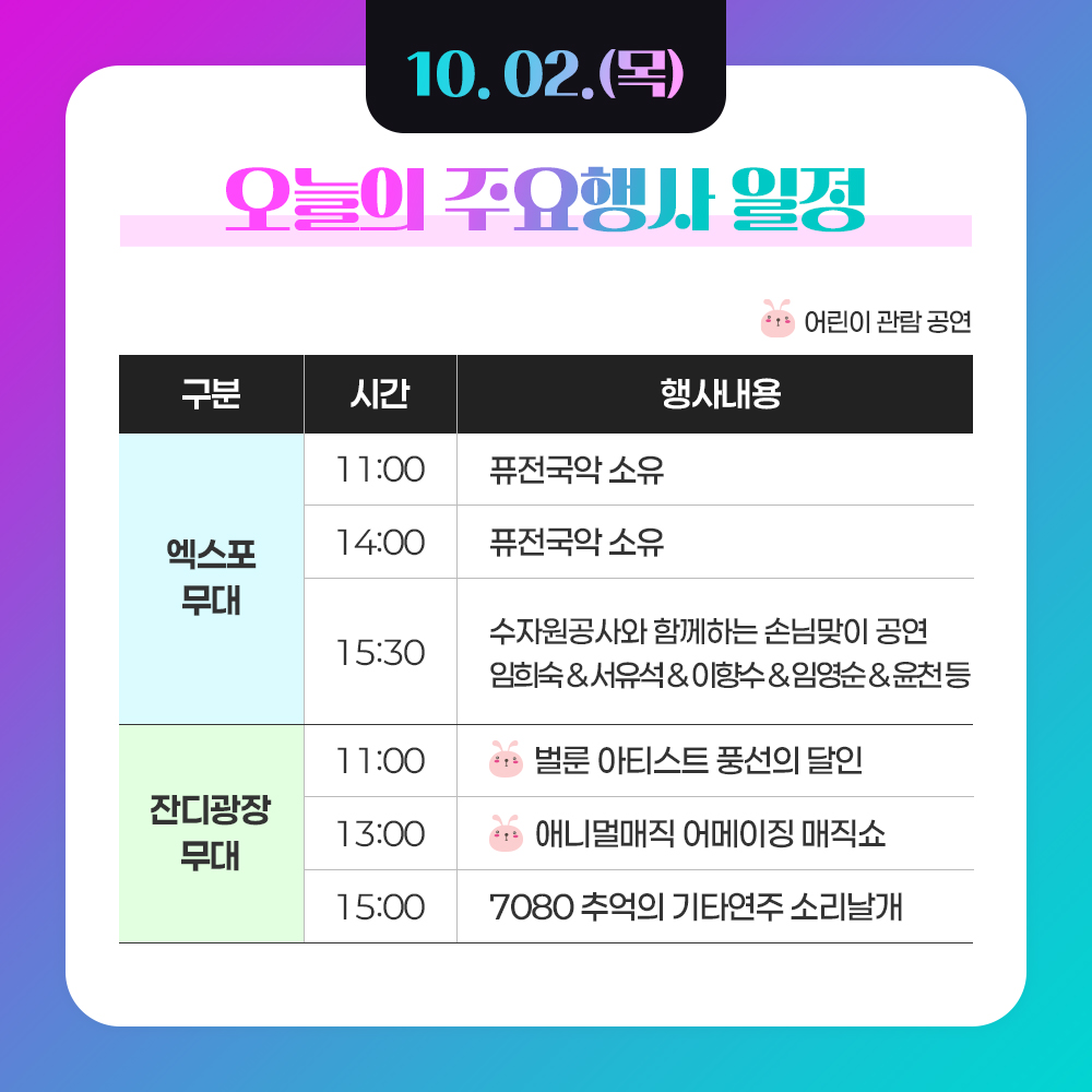 커뮤니티 카드뉴스 2025 제천국제한방천연물산업엑스포의 새로운 소식을 전합니다. 커뮤니티 엑스포안내 산업관 관람신청 행사안내 티켓안내 소식·알림 관광안내 카드뉴스 공지사항 고시공고 엑스포뉴스 포토갤러리 카드뉴스 이벤트 10월2일 주요행사일정 작성일 2025-09-29 작성자 최고관리자 이전글 10월3일 주요행사일정 다음글 10월1일 주요행사일정 목록으로