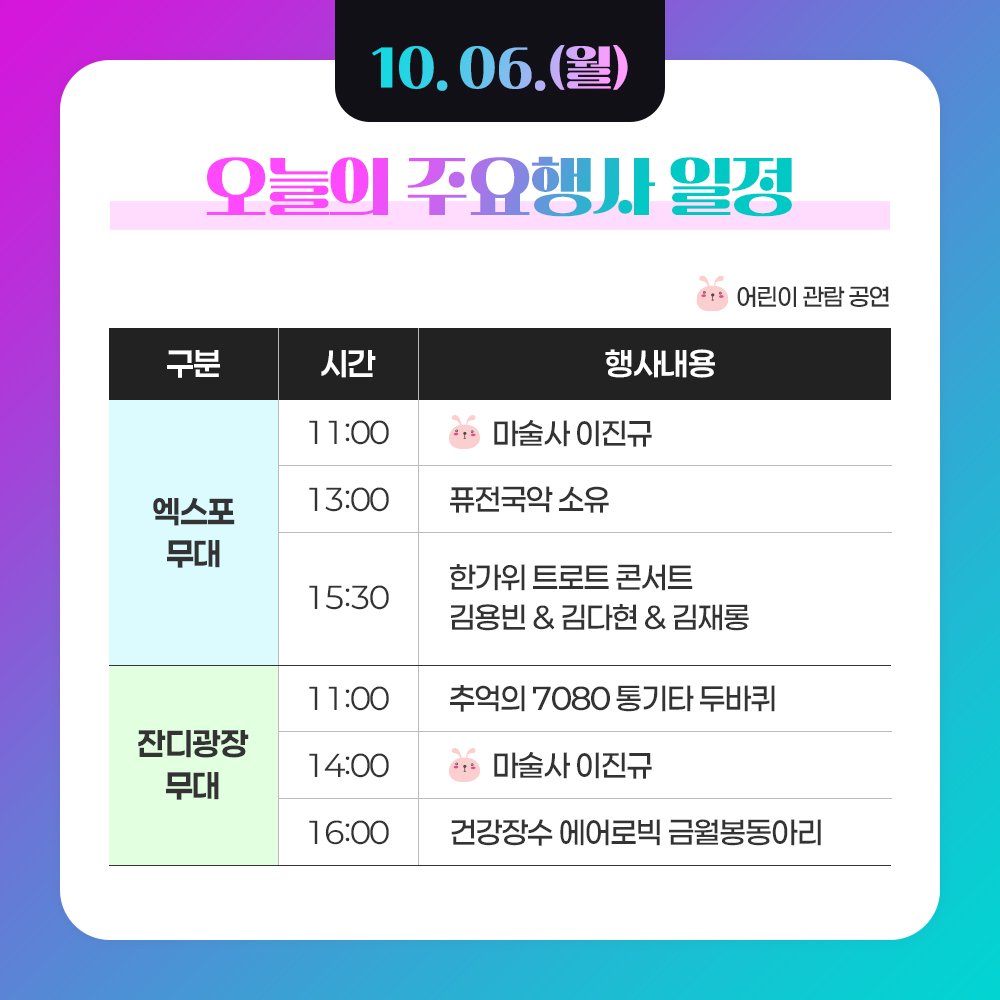 커뮤니티 카드뉴스 2025 제천국제한방천연물산업엑스포의 새로운 소식을 전합니다. 커뮤니티 엑스포안내 산업관 관람신청 행사안내 티켓안내 소식·알림 관광안내 카드뉴스 공지사항 고시공고 엑스포뉴스 포토갤러리 카드뉴스 이벤트 10월6일 주요행사일정 작성일 2025-10-01 작성자 최고관리자 이전글 10월7일 주요행사일정 다음글 10월5일 주요행사일정 목록으로