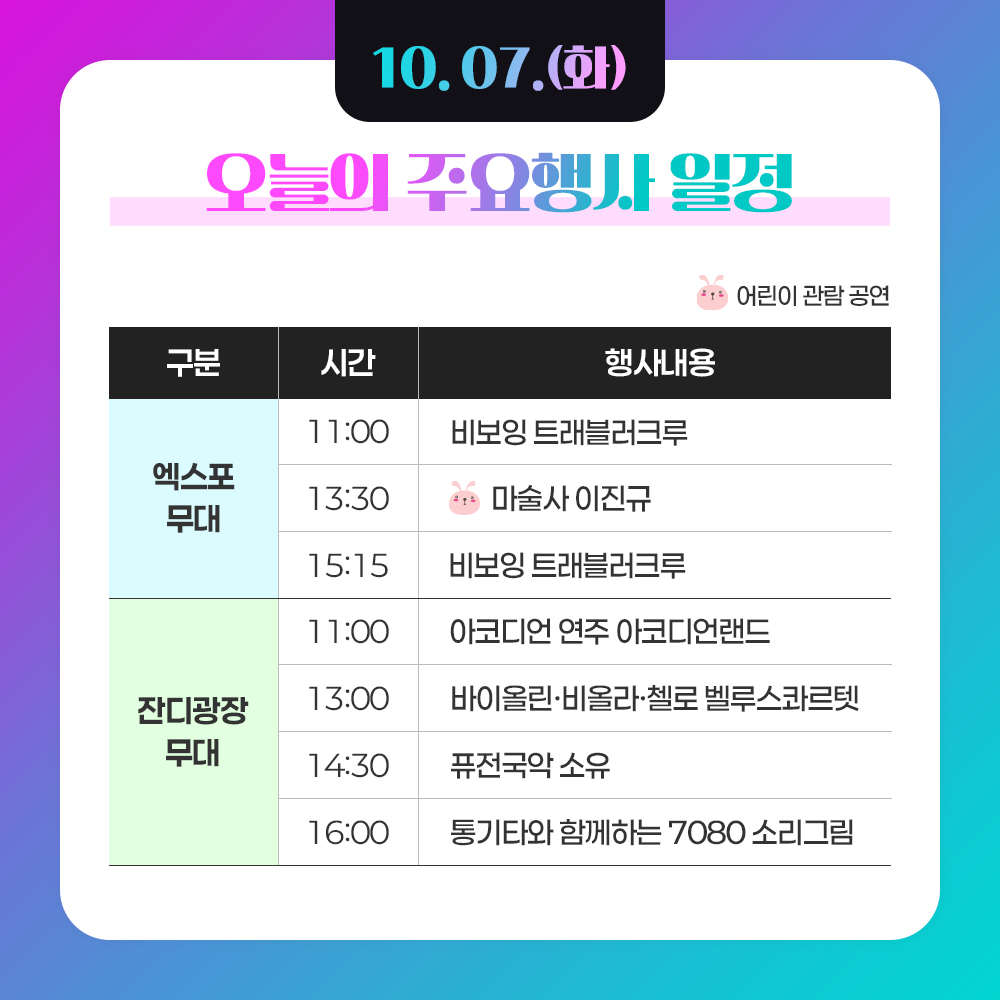 커뮤니티 카드뉴스 2025 제천국제한방천연물산업엑스포의 새로운 소식을 전합니다. 커뮤니티 엑스포안내 산업관 관람신청 행사안내 티켓안내 소식·알림 관광안내 카드뉴스 공지사항 고시공고 엑스포뉴스 포토갤러리 카드뉴스 이벤트 10월7일 주요행사일정 작성일 2025-10-01 작성자 최고관리자 이전글 10월8일 주요행사일정 다음글 10월6일 주요행사일정 목록으로